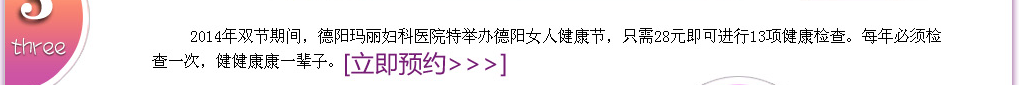 玛丽6年的高品质医疗服务是我们对德阳万千女性的有力承诺,2014年双节期间,邀请您走进玛丽,我们精心为您检查身体,排查妇科疾病,玛丽妇科专家团360度为您守护健康! |
